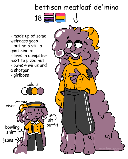 18, genderfluid, pansexual, weirdass slime goat, birthday 8/24