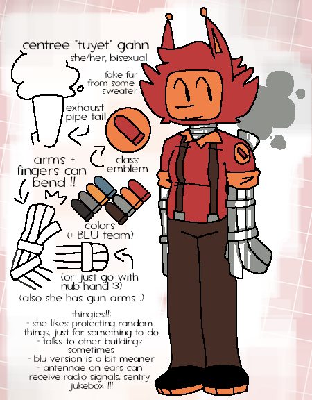 RED's engineer decided to make a strangely cat-shaped sentry gun, now she's here. she really likes her job, just being able to shoot people all day. She is not paid.