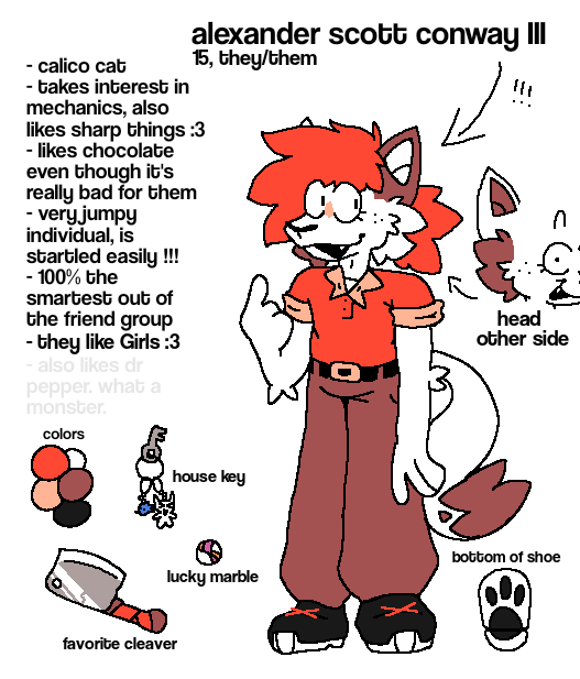 personality-wise? they are definitely chaotic neutral. they like to show off a lot and be cocky but they are sort of a wimp sometimes!