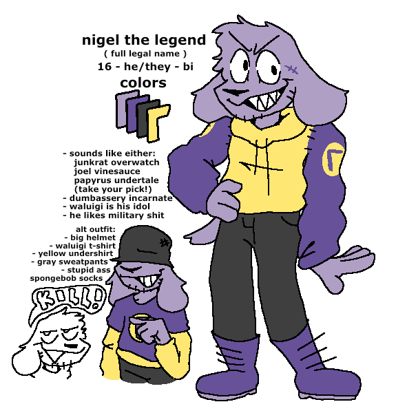 voice claims: Junkrat (Overwatch), Papyrus (Undertale), Suction Cup Man (from suction cup man), Vargskelethor Joel