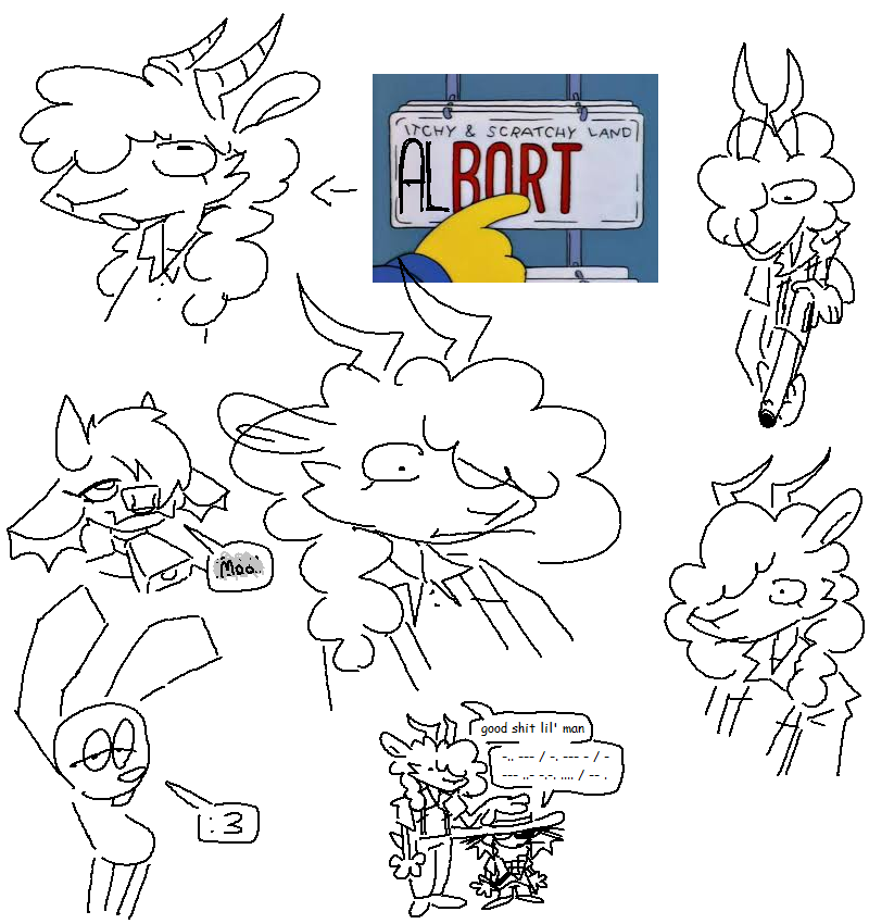 she was created a day before the initial discord post on September 7th, in a voice call with some friends of mine. you can tell because this image that contains the very first drawings of albort also contain my friend's gayass fursona and also Mips hi Mips :].