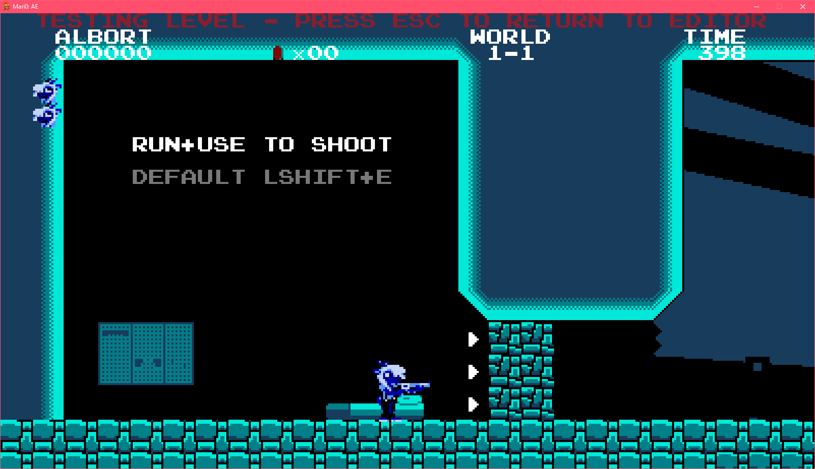 After creating the very first version of Albort with working knockback around 5 days later on the 13th, I immediately knew I had to create a mappack surrounding these mechanics and the cool jank that Mari0's engine creates surrounding them. Initially, it was just meant to be a small project, maybe a single world in length—which is why I had named the mappack's folder "shootingrange". However, the scope of the project began growing incredibly fast as my ideas for the plot and greater use of Albort as a character began to flourish...